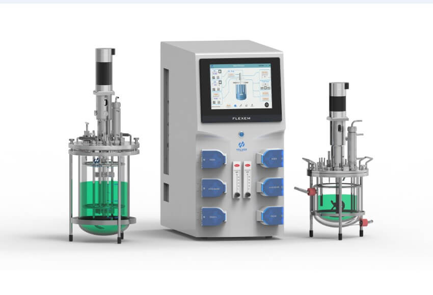 发酵罐主体采用不锈钢材料,通常采用涡轮式搅拌器。搅拌轴与罐体的连接要进行无菌密封。发酵罐罐体底部设有空气分布器或喷嘴,通过空气过滤器的无菌空气从孔径几毫米的多孔管鼓入培养液内。搅拌器由置于罐顶的搅拌电机以一定的转速驱动旋转,通过搅拌涡轮产生的液体漩涡及剪切力,将鼓入的空气打碎成小气泡,并均匀分散在培养液中。这样,既提供了细胞生长所需氧,同时又使培养液浓度均匀。