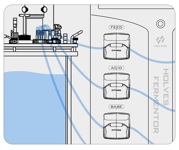 以hth.com(HOLVES)实验室发酵罐为例,pH电极测定完数值后,结果会直接反馈给HF-Control V2.2控制系统,系统则会根据原先设定数值进行调节补料等操作,将罐内pH值控制在最佳范围内。