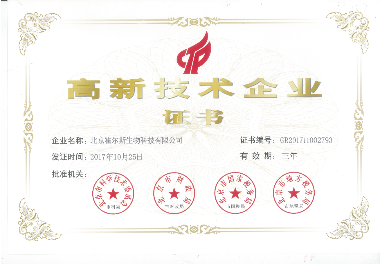 hth.com获得北京市科委颁发的高新技术企业称号