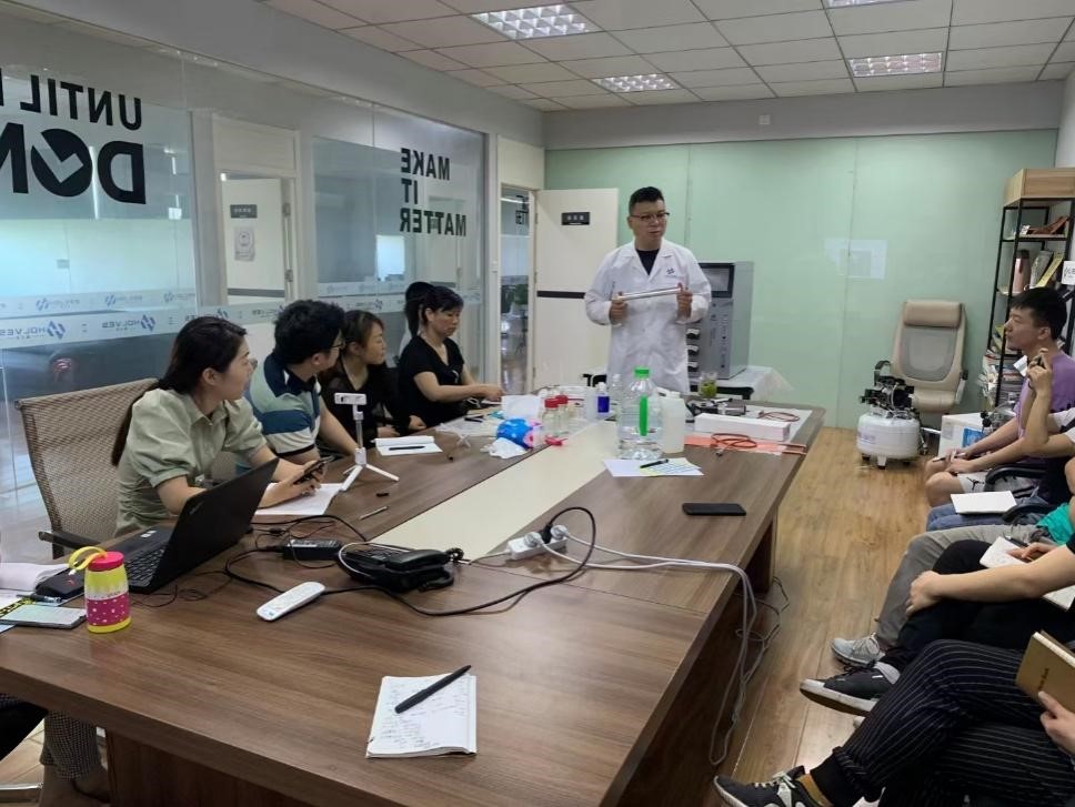 对发酵罐的培训中,公司研发领导层重点介绍了发酵罐设备的构造。从罐体到控制系统,依次对安装、调试、灭菌等进行了详细的解说,小到软管夹,大到整个行业的加工制造。培训持续了近6个小时,期间大家一起交流、探讨,现场氛围融洽、讨论激烈。