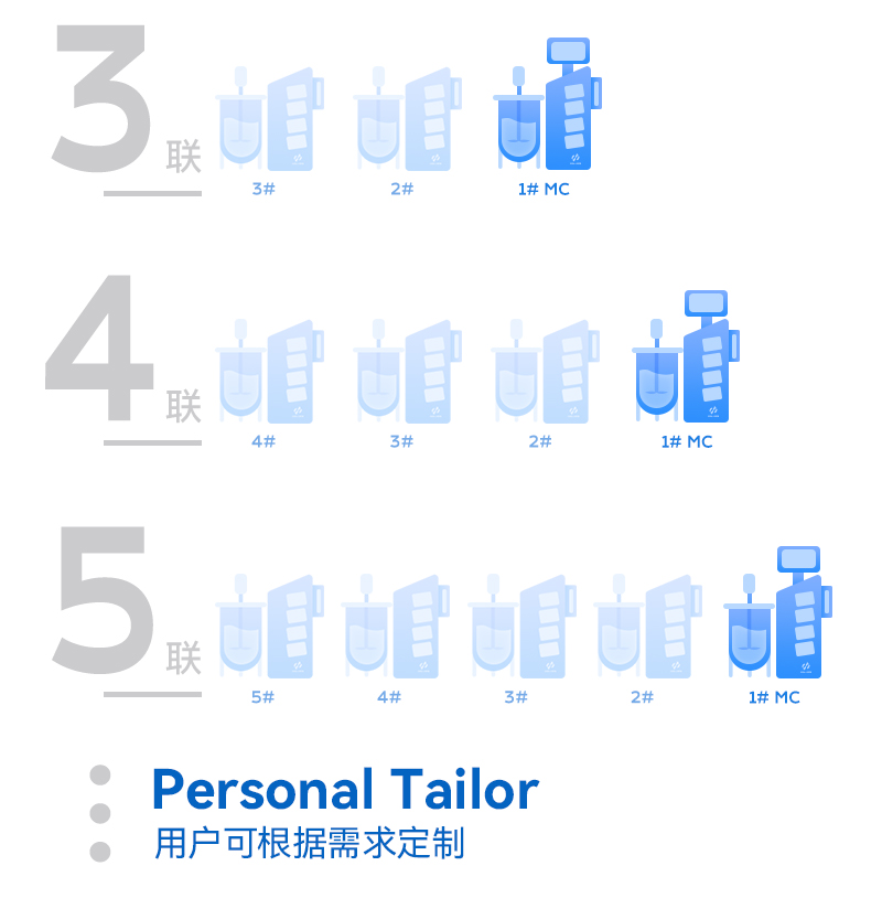 模块化设计理念使得Cla210系列是多联罐的最佳呈现系统,通过搭积木的方式,轻松实现双联罐、三联罐、四联罐、五联罐和六联罐,以及更多的联罐系统,用户可以分开使用,也可以统控使用,对于需求不同的用户和场景极具适应性与兼容性。